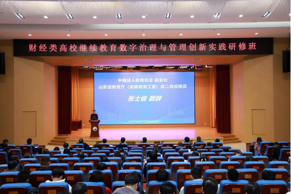 中国成人教育协会副会长、山东省教育厅(省委教育工委)原二级巡视员张士俊首先致欢迎辞。他表示,教育强国战略的实施为高校继续教育提供了前所未有的发展机遇,财经类高校在继续教育领域肩负着重要使命,数字化转型为高校履行这一使命开辟了全新赛道。他认为,通过云计算、大数据、人工智能等前沿技术,高校继续教育应打破时空限制,实现个性化教学和智能化学习支持,满足学习者多样化需求。