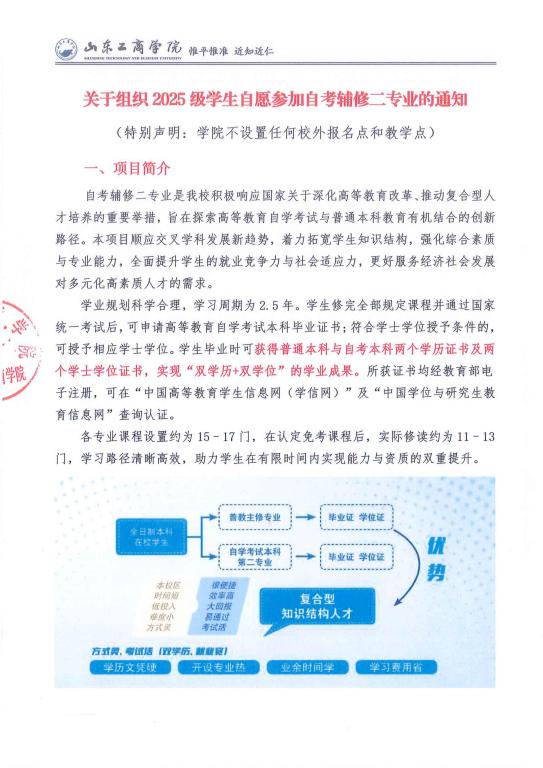 关于组织2025级学生自愿参加自考辅修二专业的通知