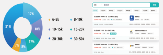 数据分析、商业分析多个分析类岗位方向,市场需求量大,全国平均月薪18.3K,晋升空间大