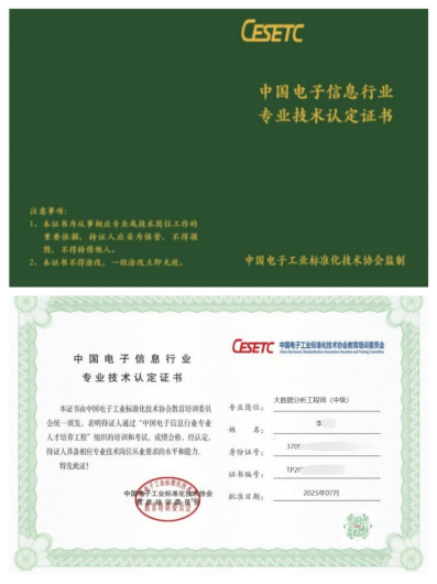 1、发证部门为中国电子工业标准化技术协会教育培训工作委员会