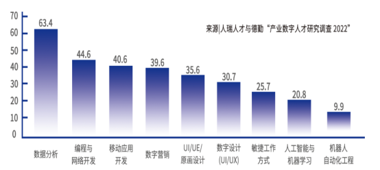 企业在进行数字化转型的同时,对人才技能培养的方向也发生了相应的变化,数据分析是人才最需要掌握的其中一项技能,主要原因在于物联网技术的运用会涉及大量数据处理,企业希望招聘到的人才能够熟练使用数据进行算法预测等工作。